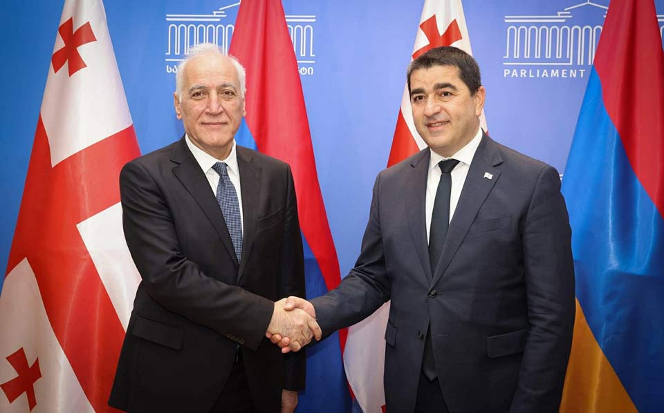 „შალვა პაპუაშვილმა განაცხადა, რომ ცვალებად სამყაროში, როდესაც წესებზე დაფუძნებული საერთაშორისო წესრიგი არაერთი გამოწვევის წინაშეა, საქართველო და სომხეთი მხარს უჭერენ ერთმანეთის სუვერენიტეტს, ტერიტორიულ მთლიანობას. შეხვედრაზე ყურადღება გამახვილდა ორ ქვეყანას შორის ნაყოფიერ საპარლამენტო ურთიერთობებზე, როგორც პარლამენტის თავმჯდომარეებს, ისე კომიტეტებსა და მეგობრობის ჯგუფებს შორის. სომხეთის პრეზიდენტმა აღნიშნა, რომ ცვალებად სამყაროში, გარე ძალების გავლენების ფონზე, ქვეყნებმა უნდა შეძლონ, დაიცვან ეროვნული ინტერესები და არსებული ვითარება დადებითი შედეგების მისაღწევად გამოიყენონ. მან განაცხადა, რომ მნიშვნელოვანია, საქართველოსა და სომხეთს შორის არსებული მტკიცე მეგობრობა მომავალ თაობებს გადაეცეს. მხარეებმა განაცხადეს, რომ ორივე ქვეყანამ კარგად იცის მშვიდობის ფასი და, შესაბამისად, მშვიდობის შენარჩუნებას განსაკუთრებული პასუხისმგებლობით უდგებიან. შეხვედრაზე ისაუბრეს რეგიონში არსებულ ვითარებაზე, ხაზი გაესვა სომხეთსა და აზერბაიჯანს შორის სამშვიდობო შეთანხმების პარაფირების მნიშვნელობას, ასევე, სომხეთსა და თურქეთს შორის ურთიერთობებში დადებით დინამიკას. მხარეებმა დააფიქსირეს საერთო პოზიცია, რომ სამხრეთ კავკასიის რეგიონი, სადაც სამივე ქვეყანა ერთიანია და მჭიდრო კავშირებს ინარჩუნებს, მეტად მიმზიდველი იქნება და მრავალ ეკონომიკურ შესაძლებლობას მოიტანს. აღინიშნა, რომ პოლიტიკური სტაბილურობა ეკონომიკური აღმავლობის საფუძველი გახდება. მხარეებმა ასევე ყურადღება გაამახვილეს სამმხრივი თანამშრომლობის ფორმატების მნიშვნელობაზე. შეხვედრაზე აგრეთვე განიხილეს საქართველოსა და სომხეთის ურთიერთობები ევროკავშირთან და ხაზი გაუსვეს შუა დერეფნის მნიშვნელობას მეტი დაკავშირებადობის ხელშეწყობის კუთხით“, – ნათქვამია პარლამენტის პრესსამსახურის ინფორმაციით,