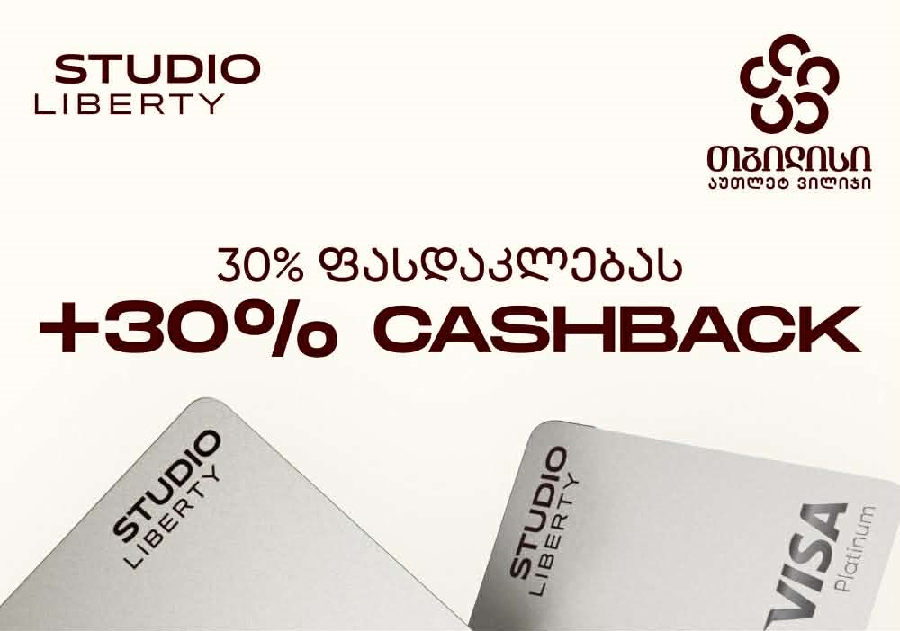 Outlet Village-ის უკვე არსებულ მინიმუმ 30%-იან ფასდაკლებებს სტუდიო ლიბერთის Visa Platinum ბარათით გადახდისას მომენტალური 30% ქეშბექი დაემატება.