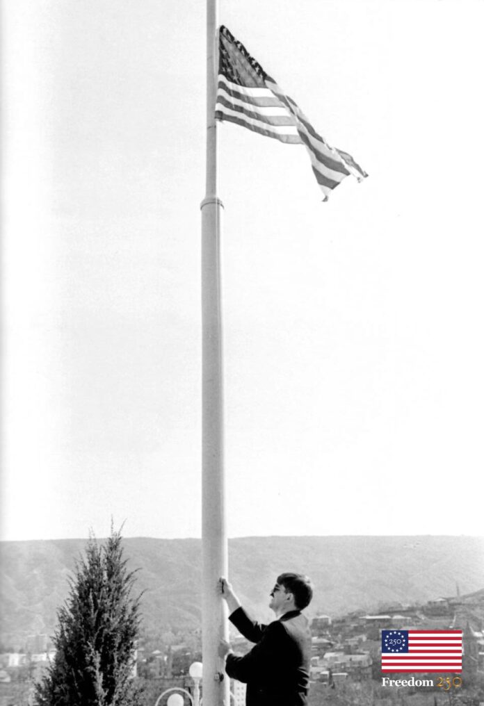 „1992 წლის 23 აპრილს, დიპლომატიური ურთიერთობების დამყარებიდან სულ რაღაც ერთ თვეში, შეერთებულმა შტატებმა თბილისში საელჩო გახსნა. ეს იყო საქართველოს სუვერენიტეტისა და დამოუკიდებლობისადმი აშშ-ის მხარდაჭერის ძლიერი სიგნალი.
