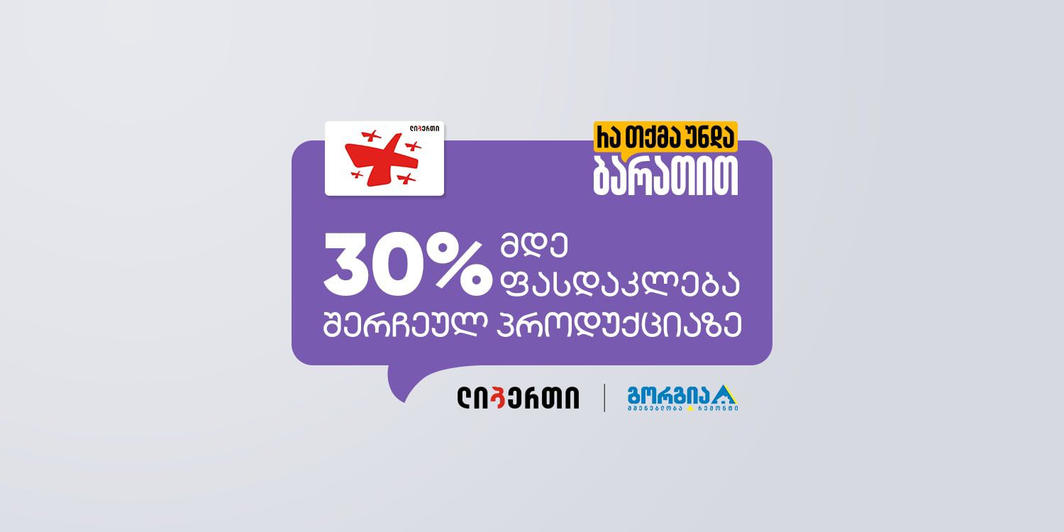 ქვეყნის ნებისმიერ წერტილში მცხოვრები ლიბერთის სოციალური ბარათის მფლობელისთვის, გორგიაში 30%-მდე ფასდაკლებით სარგებლობა, ლიბერთის სოციალური ბარათით მხოლოდ ლიბერთის პოს ტერმინალზე გადახდის შემთხვევაშია შესაძლებელი.