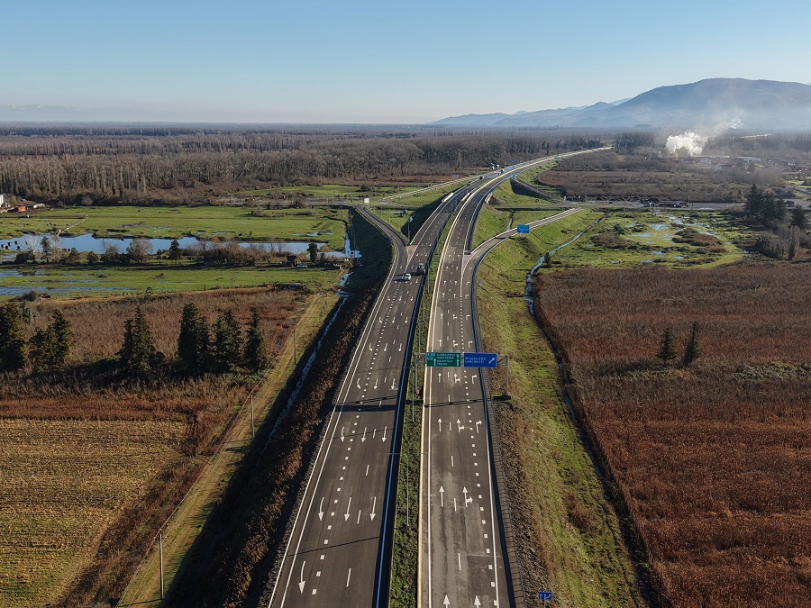 საავტომობილო გზების დეპარტამენტის ფოტოზე: სამტრედია-გრიგოლეთის ჩქაროსნული მაგისტრალის ლანჩხუთი–ლესას 8 კმ-იანი, 4-ზოლიანი ახალი მონაკვეთი 2025 წლის 17 დეკემბერი